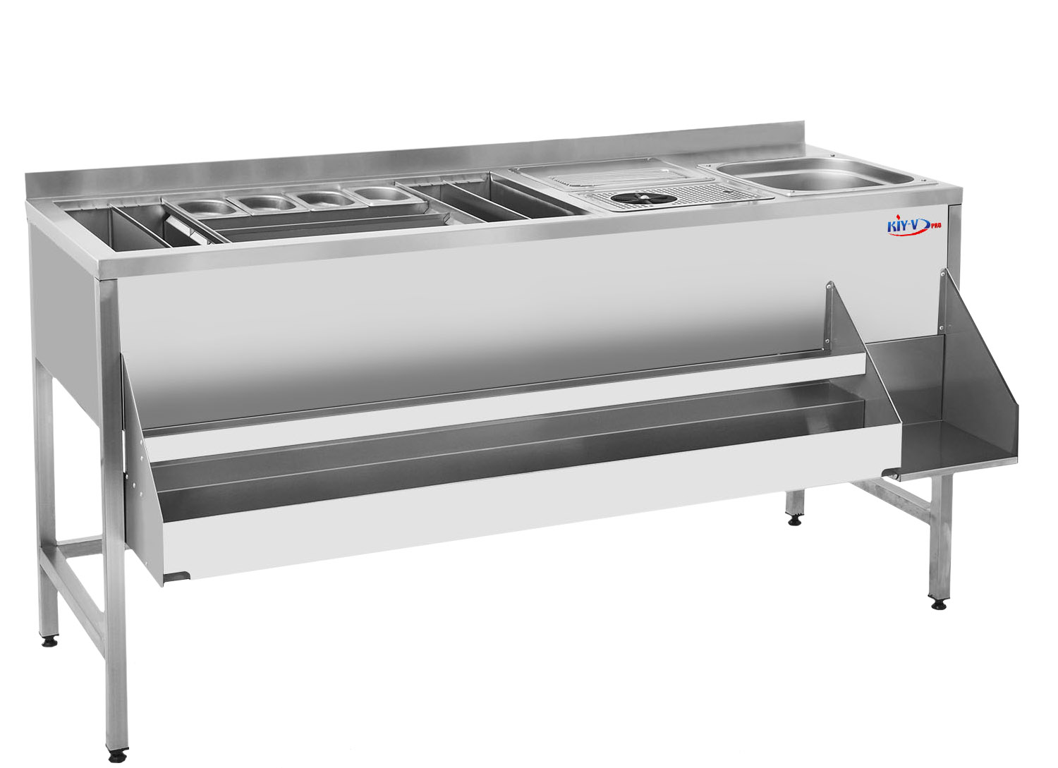 Кассеты для соков. Конструкция станции позволяет перестовлять перегородки и менять размеры кассет для соков. |