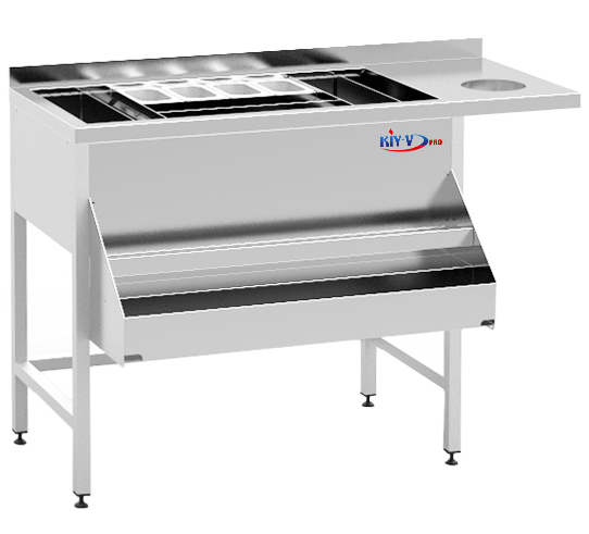 коктейлей. Перегородки основной емкости легко вынимаются для обслуживания, а рельса для бутылок имеет вырезы
