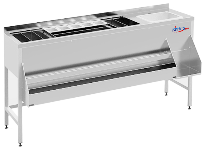 коктейлей. Перегородки основной емкости легко вынимаются для обслуживания, а рельса для бутылок имеет вырезы