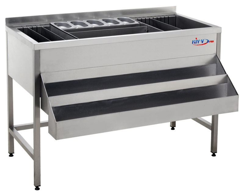 коктейлей. Перегородки основной емкости легко вынимаются для обслуживания, а рельса для бутылок имеет вырезы