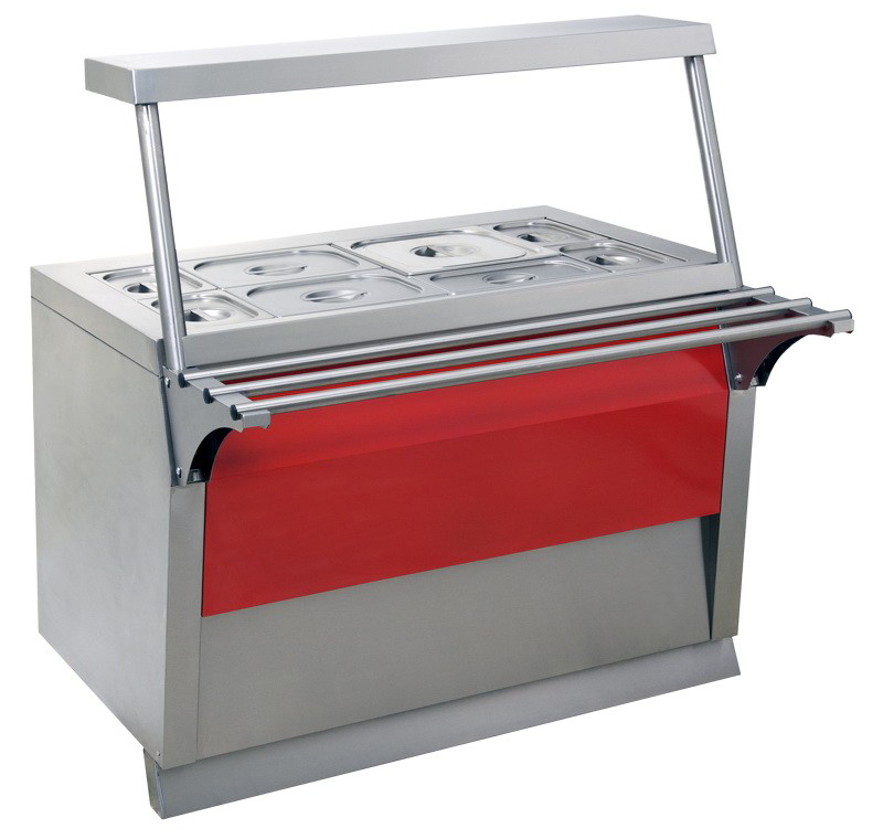 Полка. Мармит имеет встроенную полку для выкладки продуктов покупателям. Под полкой для подсветки подогреваемых продуктов установлен LED светильник. |