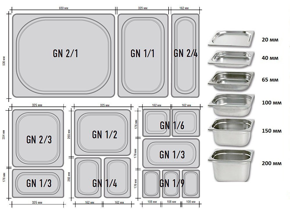 Гастроемкости могут быть использованы на всех предприятиях общественного питания и торговли, использующих пароконвектоматы, холодильные шкафы, тепловые витрины, линии раздачи, тележки, стеллажи, холодильные камеры.