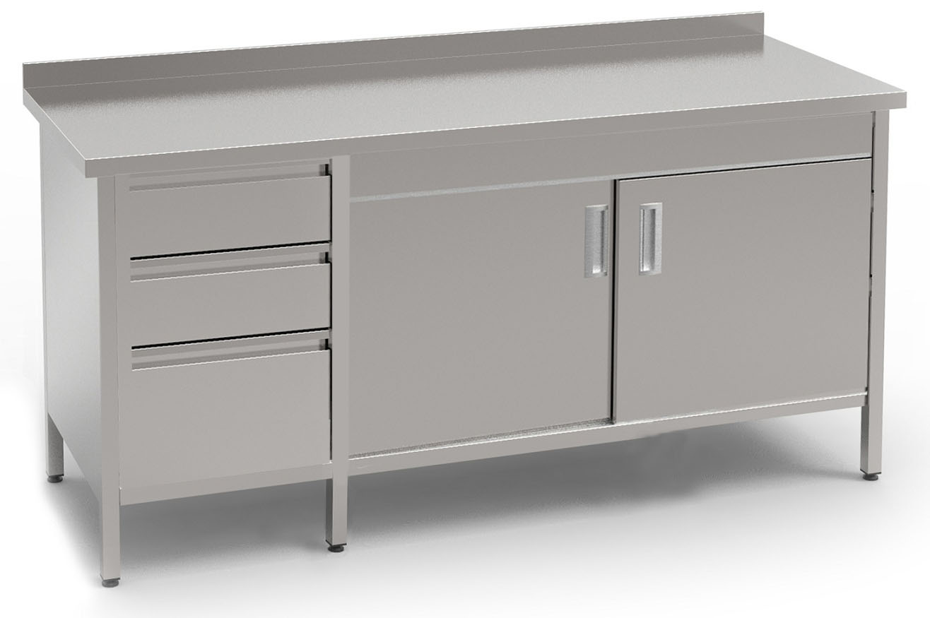 | Материал изготовления. Столешница и каркас стола–тумбы выполнены из нержавеющей стали. |