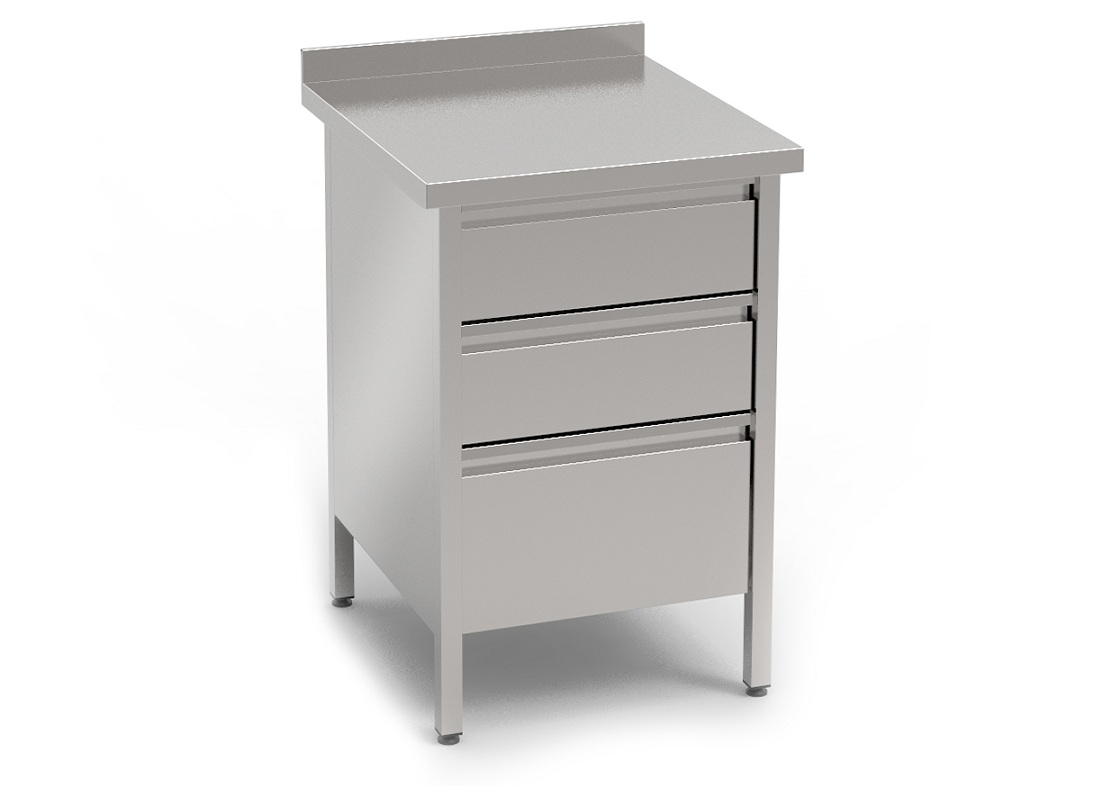 | Материал изготовления. Столешница и каркас стола–тумбы выполнены из нержавеющей стали. |