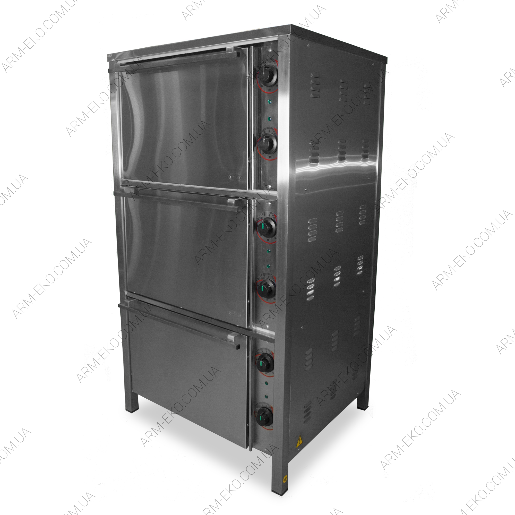 Трехкамерный жарочный шкаф АРМ-ЭКО ШЖЭ 3Н используется для выпечки самых разнообразных хлебобулочных изделий, жарки мяса, рыбы, а также для запекания овощей.